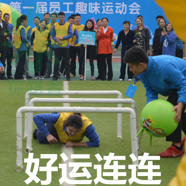 好運(yùn)連連:用賽道項(xiàng)目接力的方式進(jìn)行,從起點(diǎn)出發(fā)依次完成每個(gè)關(guān)卡挑戰(zhàn)。比賽關(guān)卡分為雙人跳繩(2人)、企鵝漫步(3人)、充氣跨欄(2人)、盲人過(guò)桿(2人)、魚(yú)躍龍門(mén)(1人)要求每輪參賽隊(duì)員必須在上輪隊(duì)員完成后才能開(kāi)始挑戰(zhàn),全隊(duì)完成用時(shí)短者獲勝。