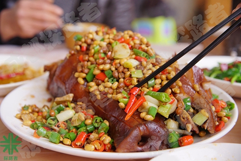 這就是農(nóng)家樂的特色菜,我們把它稱為“鶴鳴山第一菜,鴻運(yùn)當(dāng)頭”豬頭肉,各位看官你餓了么、流口水了嗎~