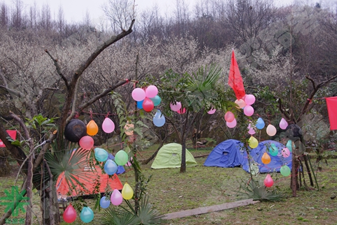 晚上的露營的營地,就在梨花樹下~